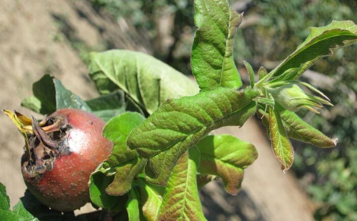 Termése, mely télen is a fán található, alma áltermés. Az 5 tüszőből álló magház ez esetben hiányzik és csupán 5 maggal találkozunk a gyümölcs húsában. A gyümölcs húsa az első dér – az első fagyos napok után válik ehetővé.