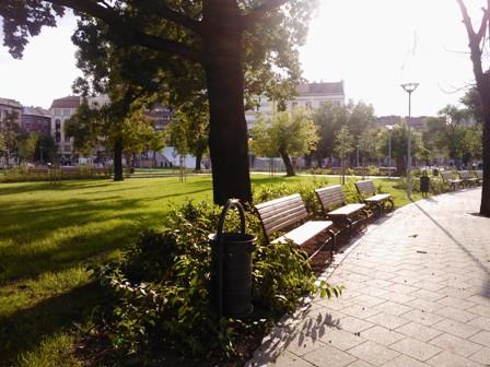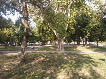 A szabadon bejárható részen láttam vadgesztenyét is, ami a termés lehullásakor a kicsik kedvence lehet. Van még hárs, platán és ostorfa a játszótér közelében, a teret határoló fasorok zöldjuharok