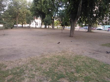 Viszont nem az egész park ilyen idilli, gondozott. A kopott, foltos gyep csak jelzésértékű, a kavicsburkolat jórészt eltűnt, és a köztéri bútorok is lehangoló állapotban vannak.