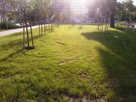 Itt már jól láthatóak a fiatalt fácskák, valamint a vetett gyep