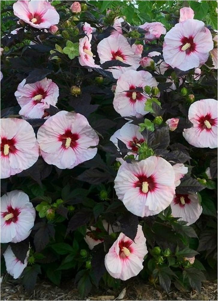 Az átlagosan 15-25 cm közötti átmérőjű, 5 egymást átfedő sziromból álló krémfehér, rózsaszín, bordó, piros és ezek árnyalataiban és kombinációiban tündöklő, látványos porzójú virágai júliustól szeptemberig nyílnak. Igaz, 1-1 virág csupán 1-2 napig pompázik, ám az újabbak megjelenésével hosszú időn keresztül gyönyörködhetünk bennük.