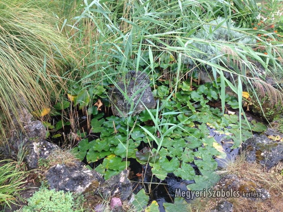 A képen egy alig 3 négyzetméteres kerti tó látható, amit még a nyolcvanas években építettek és ennek megfelelően kibetonoztak. Tehát évente akár többször is teljesen ki tudnak tisztítani. És mivel növényekkel ültették körbe, így ízlésesen integrálódott a kertbe. Abban persze biztosak lehetünk, hogy a vízfelület mindig is a kert legimpozánsabb része lesz, tartsuk azonban magunkat a "kevesebb, néha több" elvéhez.