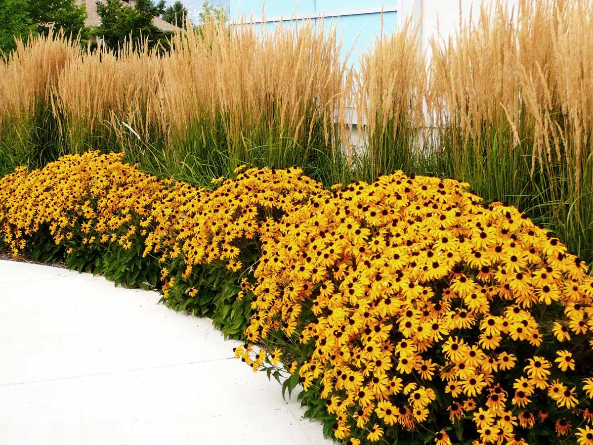 A sárga kúpvirágok szinte minden díszfűvel jól kombinálhatók!