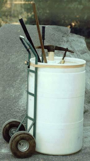 Ezt a tárolót megfűszerezhetjük azzal, ha kereket szerelünk rá, így egy mozgó szerszámállomásunk lehet, ezt akár kisebb méretben is elkészíthetjük, hogy csak az aktuálisan használt szerszámokat egy fordulóval tudjuk a munka helyére vinni. Erre lehet jó megoldás, a képen is látható hordós tároló, hiszen így könnyen egyik helyről a másikra vihetjük eszközeinket.