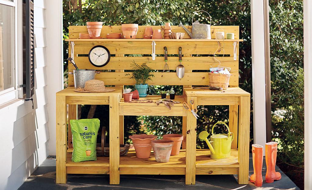 Hogy jön ez a tároláshoz? Egyszerű! Ha fal elé helyeztük az ültető „állomást”, akkor a kisebb szerszámokat, ültetőfát, metszőollókat e fölé felakaszthatjuk, míg az aljába polcot kialakítva helyet kaphatnak a cserepek, öntöző kannák is. Ha van elég helyünk mellé szintén a falra rögzíthetjük a szerszámainkat is.