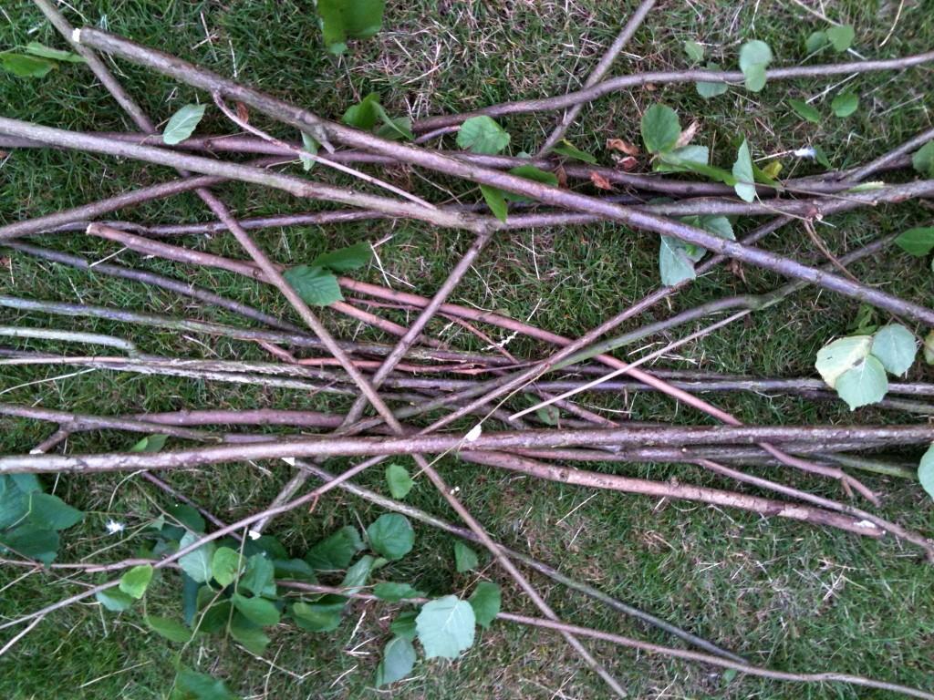 Először is megfelelő alapanyagokra van szükség a munka megkezdéséhez. A vázat adó oszlopokhoz használjunk puhafát, de vastagabb mogyoróágak is megfelelőek. A fonott részhez a kellő hajlékonysággal rendelkező fűz vagy mogyoró vesszőt.